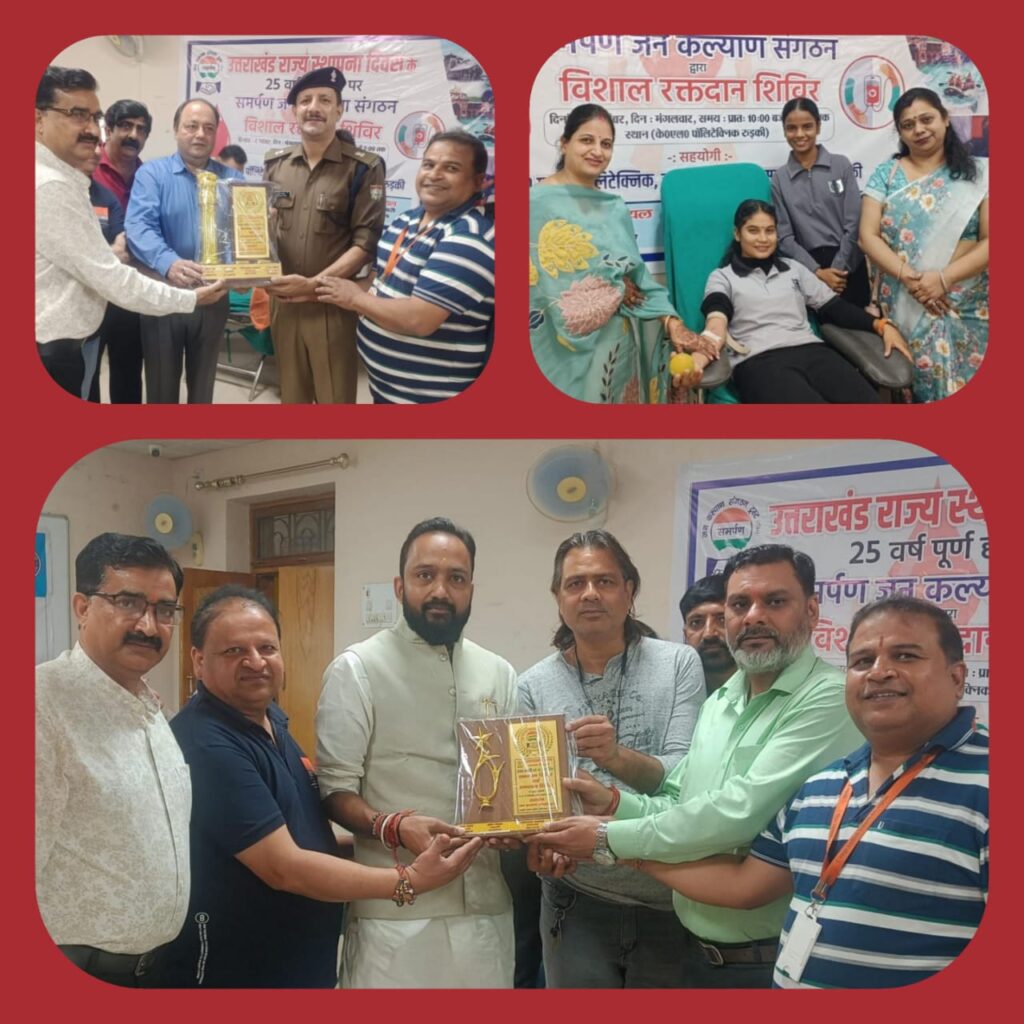 उत्तराखंड स्थापना दिवस पर समर्पण संस्था ने किया रक्तदान शिविर का आयोजन