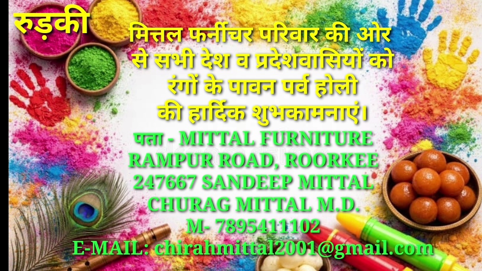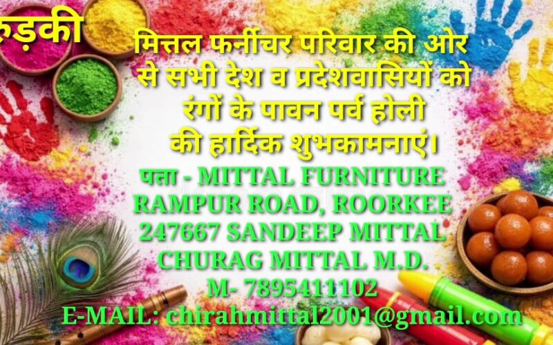 मित्तल फर्नीचर परिवार की ओर से सभी देश व प्रदेशवासियों को रंगों के पावन पर्व होली की हार्दिक शुभकामनाएं