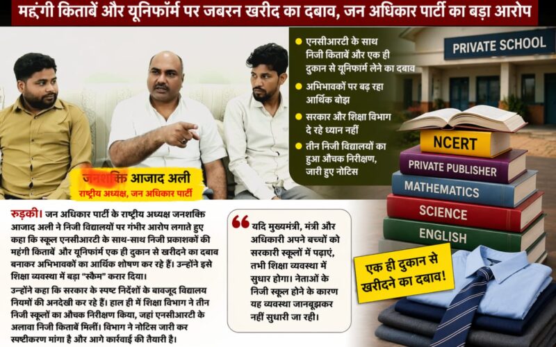 जन अधिकार पार्टी के राष्ट्रीय अध्यक्ष आज़ाद अली ने निजी स्कूलों के खिलाफ खोला बड़ा मोर्चा : निजी स्कूल कर रहे शिक्षा के नाम पर ‘स्कैम’