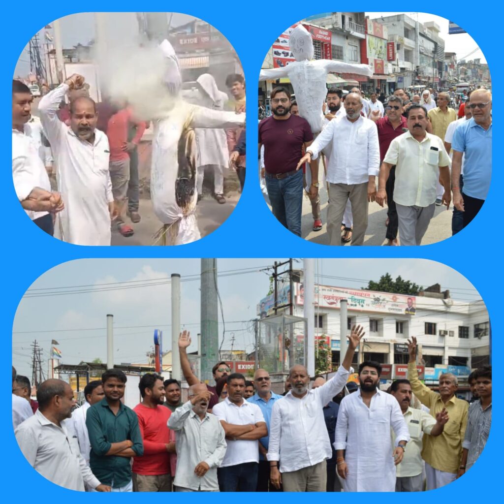 कांग्रेस ने पेपर लीक प्रकरण पर भाजपा सरकार को घेरा, चंद्रशेखर चौक पर किया पुतला दहन