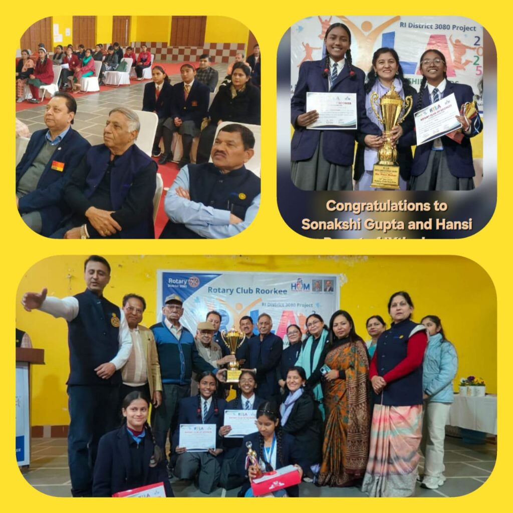रोटरी क्लब रुड़की द्वारा रोटरी रायला कार्यक्रम के अंतर्गत बी.एस.एम. इंटर कॉलेज के सभागार में ऑनलाइन शिक्षा बनाम पारंपरिक शिक्षा विषय पर एक भव्य एवं ज्ञानवर्धक विचार गोष्ठी का आयोजन किया गया। इस कार्यक्रम में रुड़की एवं आसपास के 20 इंटर कॉलेजों के विद्यार्थियों ने उत्साहपूर्वक भाग लिया और विषय के पक्ष व विपक्ष में अपने विचार प्रभावशाली ढंग से प्रस्तुत किए।विचार गोष्ठी में एस.एन.डी. पब्लिक स्कूल, आर्मी पब्लिक स्कूल–2, शिवालिक पब्लिक स्कूल, वासुदेव मैथली सरस्वती विद्या मंदिर, मैथोडिस्ट इंटर कॉलेज, ज्ञानदीप पब्लिक स्कूल, माउंट लिटरा, केन्द्रीय विद्यालय–1 व 2, बी.एस.एम. इंटर कॉलेज, डी.ए.वी. इंटर कॉलेज, नवरचना पब्लिक स्कूल, आर्य कन्या पाठशाला इंटर कॉलेज सहित कुल 20 विद्यालयों की सहभागिता रही। विद्यार्थियों ने आधुनिक तकनीक आधारित ऑनलाइन शिक्षा और पारंपरिक कक्षा शिक्षण के लाभ व सीमाओं पर तर्कपूर्ण ढंग से अपने विचार रखे।कार्यक्रम की अध्यक्षता करते हुए रोटरी क्लब रुड़की की अध्यक्षा रोटे. रीना नैथानी ने कहा कि शिक्षा जीवन की मूलभूत आवश्यकता है। उन्होंने कहा कि विद्यार्थियों के सर्वांगीण विकास के लिए स्वस्थ प्रतिस्पर्धा अत्यंत आवश्यक है। ऐसे मंच बच्चों को निर्भीक होकर अपनी बात रखने, तर्क प्रस्तुत करने और आत्मविश्वास बढ़ाने का अवसर देते हैं, जिससे उनका व्यक्तित्व निखरता है।कार्यक्रम आयोजक एवं अध्यक्ष रोटे. हर्ष प्रकाश काला ने कहा कि आज का युग प्रतिस्पर्धा का युग है, जहां विद्यार्थियों को अपनी बात मजबूती, तर्क और प्रमाण के साथ रखना आना चाहिए। यह विचार गोष्ठी विद्यार्थियों की बौद्धिक क्षमता और अभिव्यक्ति कौशल को सशक्त बनाने की दिशा में एक सार्थक प्रयास है।डिस्ट्रिक्ट गवर्नर के प्रतिनिधि एवं विशिष्ट अतिथि रोटे. मुजीब मलिक ने कार्यक्रम की सराहना करते हुए कहा कि रोटरी क्लब रुड़की द्वारा आयोजित यह कार्यक्रम विद्यार्थियों को भविष्य की चुनौतियों के लिए तैयार करता है। पूर्व रोटरी डिस्ट्रिक्ट असिस्टेंट गवर्नर रोटे. सुभाष सरीन ने कहा कि रोटे. रीना नैथानी द्वारा स्कूलों को ऐसा मंच देना उनके परिश्रम और दूरदृष्टि का परिणाम है।प्रतियोगिता का निर्णय पांच सदस्यीय निर्णायक मंडल—रोटे. सुभाष सरीन, रोटे. संजीव सैनी, रोटे. दिलीप प्रधान, रोटे. वंदना मोहन एवं रोटे. पूजा गुप्ता—द्वारा किया गया। प्रतिभागियों के उत्कृष्ट हाव-भाव, विषयवस्तु और प्रस्तुति को देखते हुए निर्णय लेना निर्णायकों के लिए चुनौतीपूर्ण रहा। कड़े मुकाबले के बाद 422 अंकों के साथ नीमा देवी काला पब्लिक स्कूल ने 19 स्कूलों को पीछे छोड़ते हुए प्रथम स्थान प्राप्त कर परचम लहराया। 420 अंकों के साथ माउंट लिटरा द्वितीय तथा 418 अंको