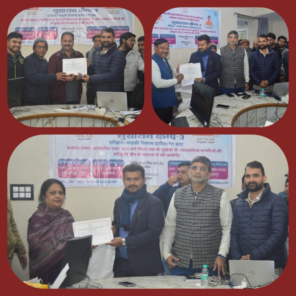 हरिद्वार–रुड़की विकास प्राधिकरण (HRDA) द्वारा मुख्यमंत्री पुष्कर सिंह धामी की जनहितकारी सोच और सरलीकरण, समाधान, निस्तारण एवं संतुष्टि के मंत्र को धरातल पर उतारते हुए आज रुड़की स्थित शाखा कार्यालय के सभागार में सुशासन कैंप का सफल आयोजन किया गया।