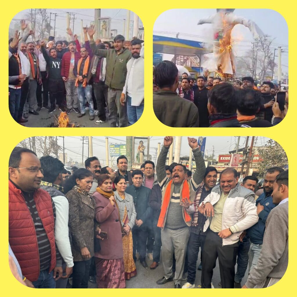 जिला महामंत्री अक्षय प्रताप सिंह ने अपने संबोधन में कहा कि बांग्लादेश में हिंदू समाज के लोगों की निर्मम हत्या की जा रही है, उन्हें बुरी तरह पीटा जा रहा है और कई मामलों में जिंदा जलाने जैसी घटनाएं सामने आई हैं। उन्होंने कहा कि यह बेहद दुर्भाग्यपूर्ण है कि वहां हिंदू समाज के लोग भय के माहौल में जीने को मजबूर हैं और बड़ी संख्या में पलायन कर रहे हैं। अक्षय प्रताप सिंह ने कहा कि जो लोग घुसपैठियों के लिए संवेदनाएं दिखाते हैं, उन्हें बांग्लादेश और पाकिस्तान में हो रहे इन अत्याचारों का आईना दिखाने के लिए ही यह प्रदर्शन किया गया है। उन्होंने यह भी कहा कि बांग्लादेश हो या पाकिस्तान, वहां हिंदुओं की संख्या लगातार घट रही है, जबरन धर्म परिवर्तन कराया जा रहा है और उनके मौलिक अधिकारों का सबसे अधिक हनन हो रहा है। इन्हीं अधिकारों की रक्षा के लिए आज सभी एकत्र हुए हैं।प्रदर्शन के दौरान वक्ताओं ने एक स्वर में मांग की कि बांग्लादेश सरकार अल्पसंख्यक हिंदुओं की सुरक्षा सुनिश्चित करे और दोषियों के खिलाफ सख्त कार्रवाई करे। साथ ही भारत सरकार से अपेक्षा जताई गई कि वह अंतरराष्ट्रीय मंचों पर इस मुद्दे को मजबूती से उठाए।इस अवसर पर शिव प्रसाद त्यागी, राकेश गिरी, कविश मित्तल, महिला मोर्चा जिला अध्यक्ष नीलकमल शर्मा, अवनीश शर्मा, आयुष, गौरव कौशिक, अभिषेक चंद्रा, राजन गोयल, सौरभ सिंगल, आदेश सैनी, सुमित अग्रवाल, दिलीप मेहंदीरता सहित बड़ी संख्या में भाजपा कार्यकर्ता एवं हिंदू संगठन के पदाधिकारी मौजूद रहे।