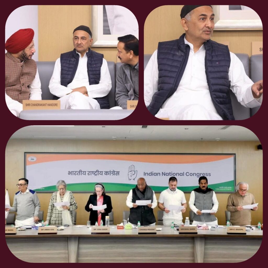 नई दिल्ली। कांग्रेस वर्किंग कमेटी (CWC) की एक अहम बैठक कांग्रेस अध्यक्ष श्री मल्लिकार्जुन खड़गे जी की अध्यक्षता में आयोजित की गई। बैठक में लोकसभा में नेता प्रतिपक्ष राहुल गांधी, कांग्रेस संसदीय दल की अध्यक्ष श्रीमती सोनिया गांधी जी तथा कांग्रेस महासचिव (संगठन) श्री के.सी. वेणुगोपाल जी ने प्रमुख रूप से सहभागिता की। बैठक का उद्देश्य देश की वर्तमान राजनीतिक, सामाजिक एवं आर्थिक परिस्थितियों की समीक्षा करना तथा पार्टी की आगामी रणनीति पर विचार-विमर्श करना रहा।
