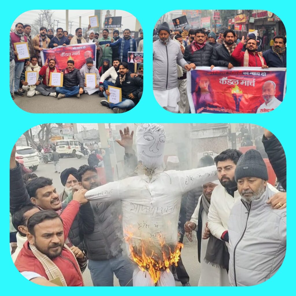रुड़की। अंकिता भंडारी हत्याकांड में न्याय की मांग को लेकर कांग्रेस का आंदोलन तेजी पकड़ता जा रहा है। इसी क्रम में आज जिला कांग्रेस कमेटी रुड़की महानगर के तत्वाधान में कैंप कार्यालय से लेकर चंद्रशेखर चौक तक विशाल पैदल मार्च निकाला गया। मार्च में कांग्रेस कार्यकर्ताओं के साथ विभिन्न सामाजिक एवं राजनीतिक संगठनों के लोग भी शामिल हुए और बंद का समर्थन किया। मार्च के उपरांत चंद्रशेखर चौक पर भाजपा सरकार का पुतला दहन कर विरोध दर्ज कराया गया।