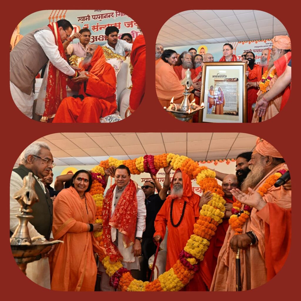 अक्षय तृतीया के पावन अवसर पर हरिद्वार में एक भव्य और आध्यात्मिक वातावरण के बीच मुख्यमंत्री पुष्कर सिंह धामी ने स्वामी परमानन्द गिरि जी महाराज की 71वीं संन्यास जयंती के उपलक्ष्य में आयोजित कार्यक्रम का दीप प्रज्वलित कर शुभारंभ किया। इस अवसर पर नमामि गंगे योजना के अंतर्गत निर्मित अखंड परमधाम गंगा घाट का विधिवत लोकार्पण भी किया गया। देशभर से पधारे संत-महात्माओं और श्रद्धालुओं की उपस्थिति ने कार्यक्रम को विशेष गरिमा प्रदान की।