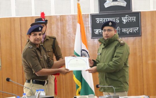 उत्कृष्ट सेवाओं के लिए सूर्यकांत सैनी सम्मानित, एसएसपी पौड़ी गढ़वाल ने दिया प्रशस्ति पत्र